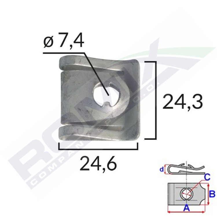 | Skoda | Superb '02-'08 | spinki i zestawy mocowań do osłon pod silnikiem | kpl. z C10126 i C10127, blaszka montażowa 24,3 x 24,6 ø 7,4 | 8D0805960 |