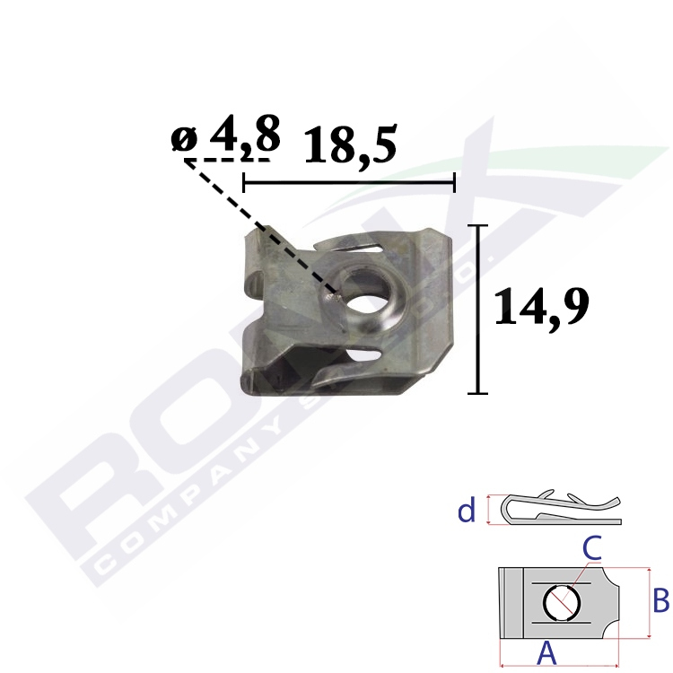 Wymiary: A 18,5 B 14,9 C 4 d 5,1 na wkręt 4,8