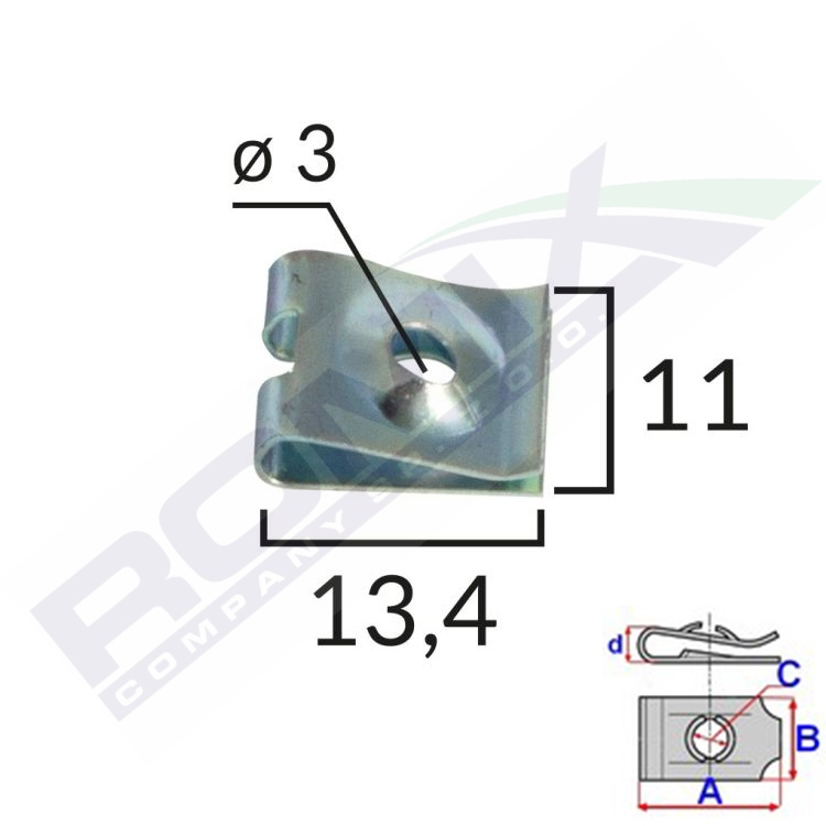 Dimensions: A 13,4 B 11 C 3 d 4,2