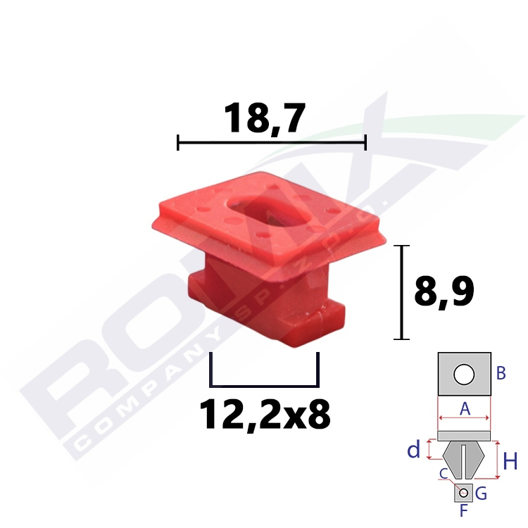 A 18,7 B 16,4 C 9,1x5 F 12,2 G 8 H 8,9