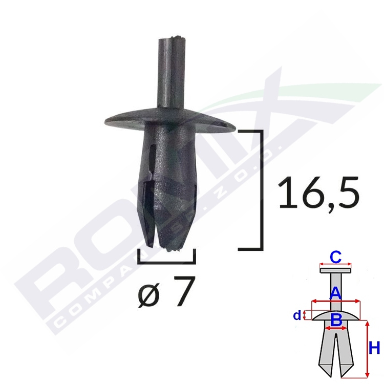 A 17,9 B 6,9 C 3,8 d 2,5 H 16,5 w otwór ø 7