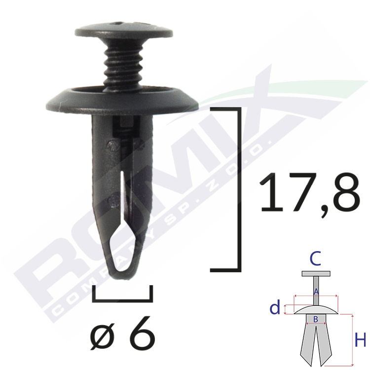 A 15,8 B 6 C 10,3 d 2,2 H 17,8 w otwór ø 6-6,5