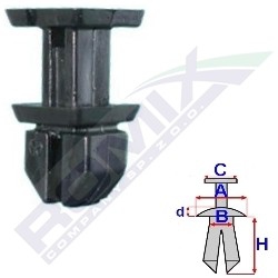 Dimensions: A 12,7 B 7,9 C 13,6 d 2 H 10,2
