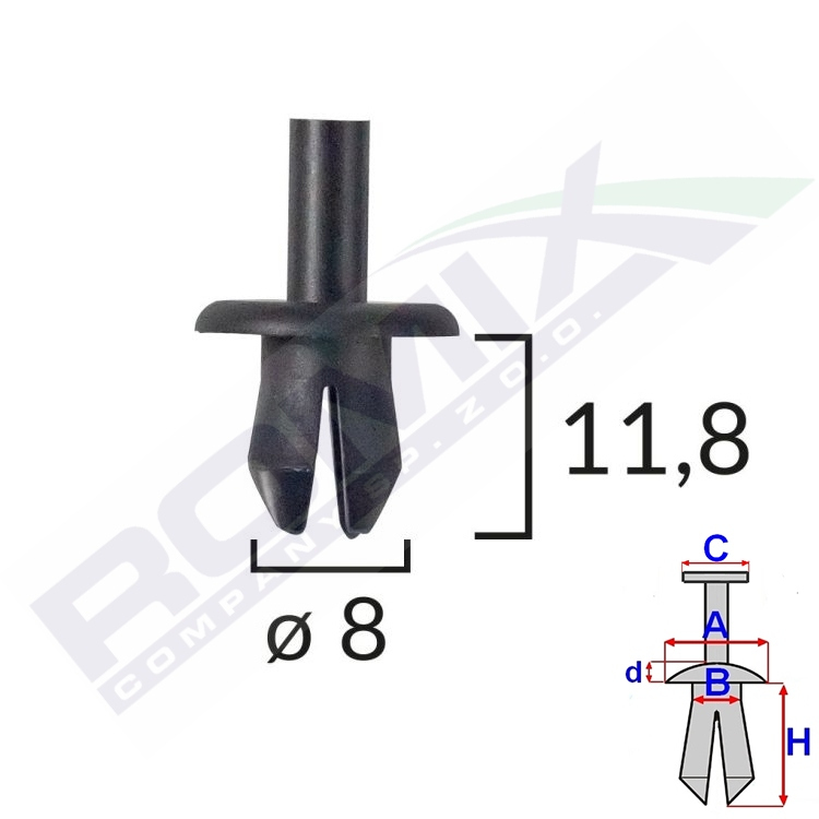 A 16 B 7,9 d 1,9 H 11,8 w otwór ø 8