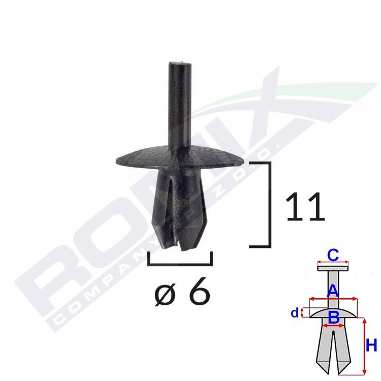A 15,9 B 5,4 C 2,9 d 2,3 H 11 w otwór ø 6