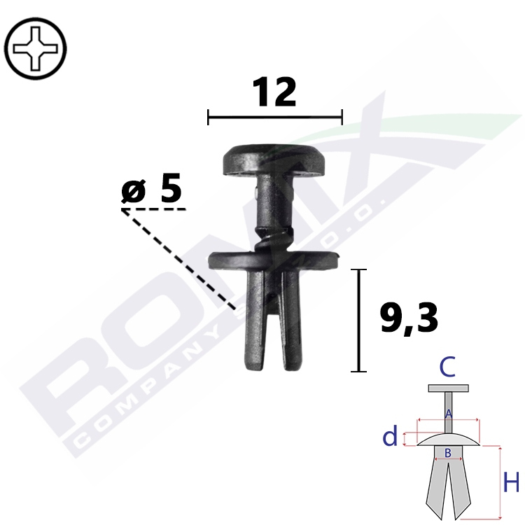 A 12 B 5 C 9,5 d 1,7 H 9,3 w otwór ø 5