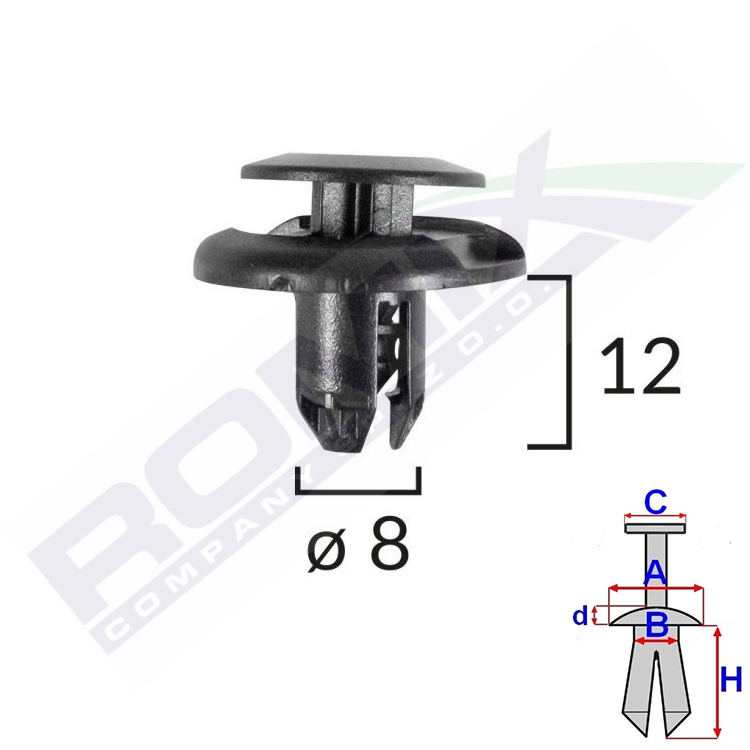 A 19,8 B 7,8 C 14,7 d 3 H 12 w otwór ø 8
