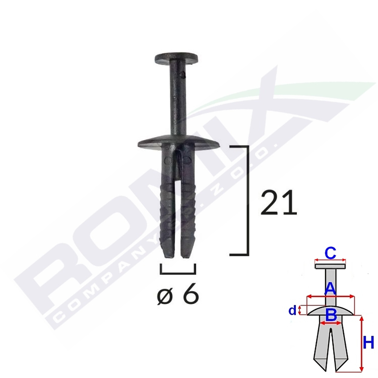 A 15,4 B 5,8 C 8,2 d 2 H 21 w otwór ø 6