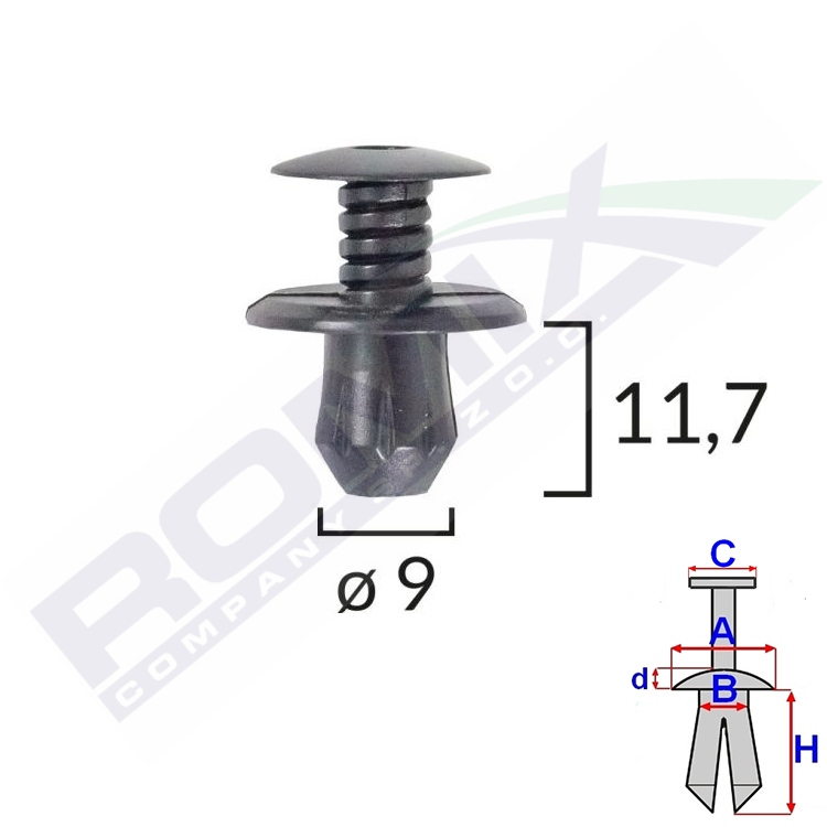 A 18,6 B 8,5 C 14,5 d 1,5 H 11,7 w otwór ø 9