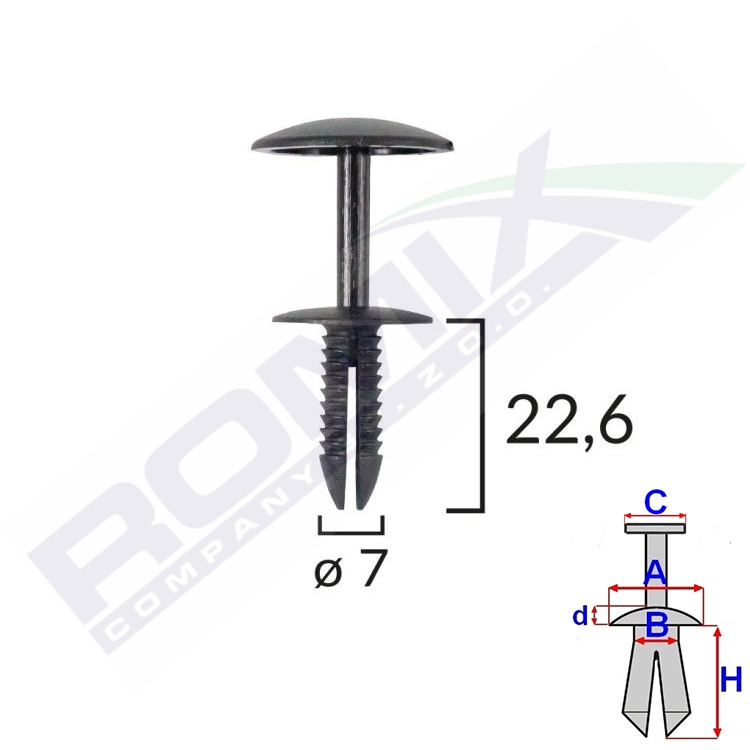 A 19,2 B 6,6 C 24 d 1,5 H 22,6 w otwór ø 7