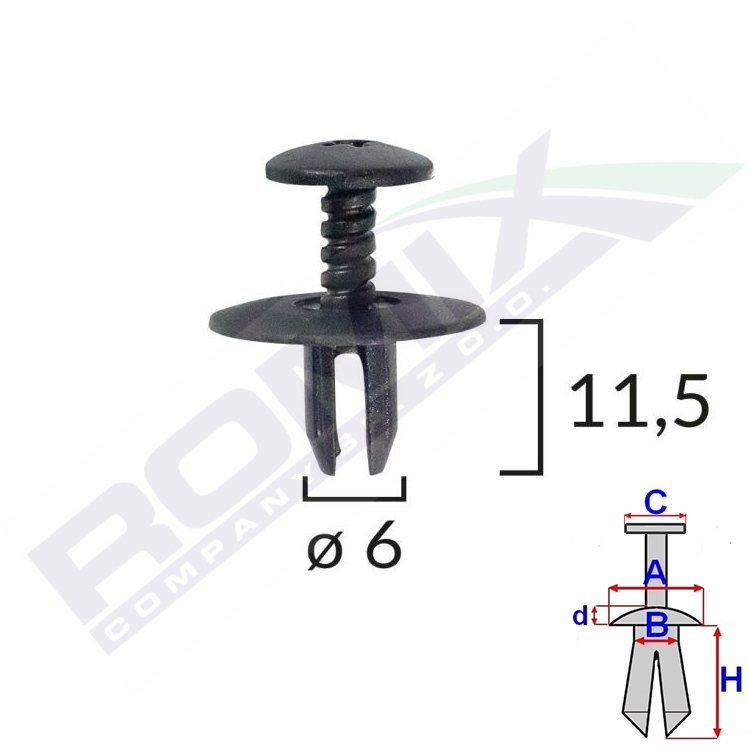 A 20 B 6,7 C 11,7 d 2 H 11,5 w otwór ø 6