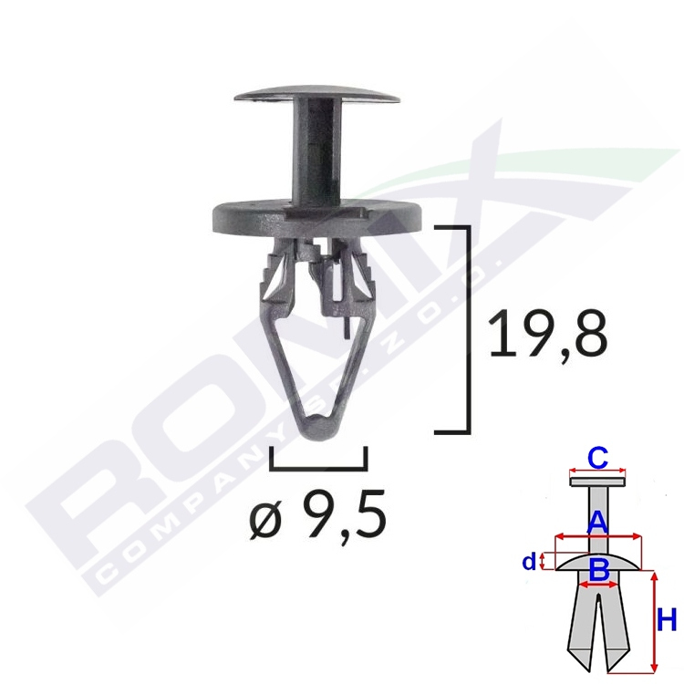 Dimensions: A 19,7 B 8,2 C 15,6 d 2,6 H 19,8 w otwór ø 9,5