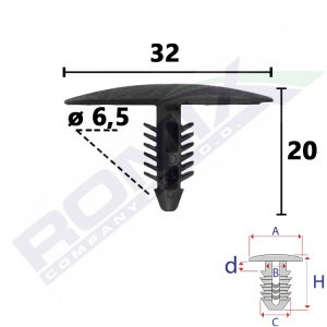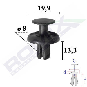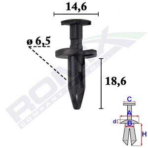 A 18,2 B 6,6 C 16,3 d 2,5 H 18 w otwór ø 6,5