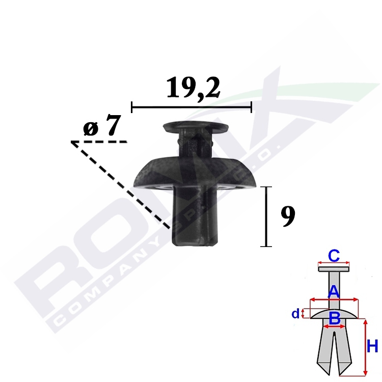 A 19,2 B 6,9 C 10,4 d 4,5 H 9 w otwór ø 7