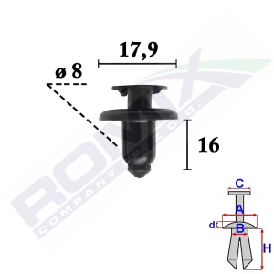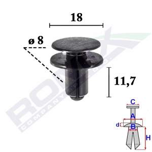 A 18 B 7,9 C 16,5 d 1,3 H 11,7 w otwór ø 8