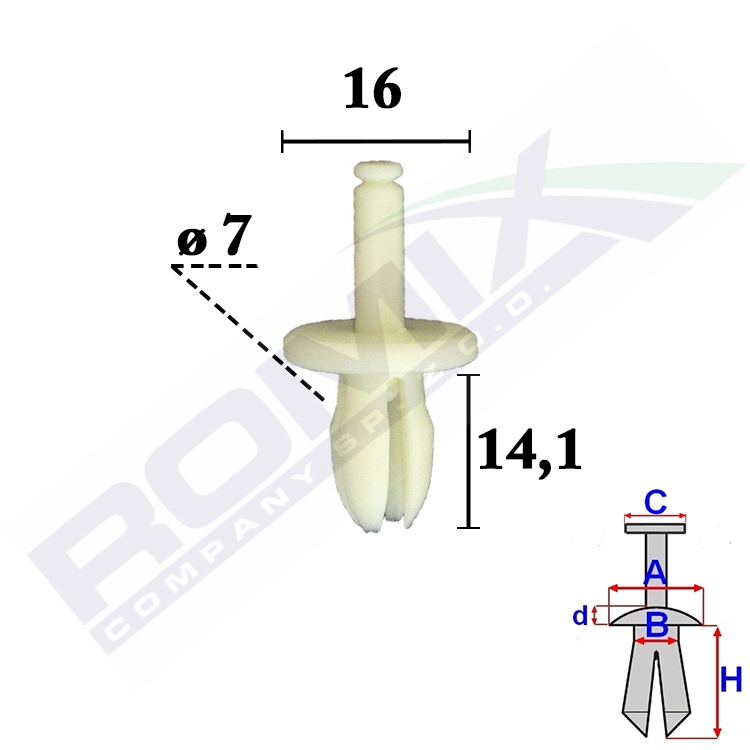 A 16 B 6,8 C 4 d 2,4 H 14,1 w otwór ø 7