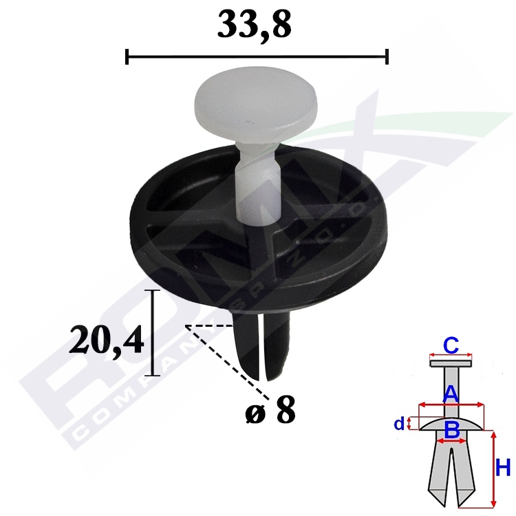 A 33,8 B 7,8 C 15,8 d 6 H 20,4 w otwór ø 8