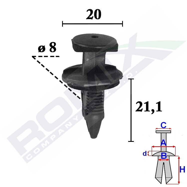 A 20 B 8 C 14,5 d 2,8 H 21,1 w otwór ø 8