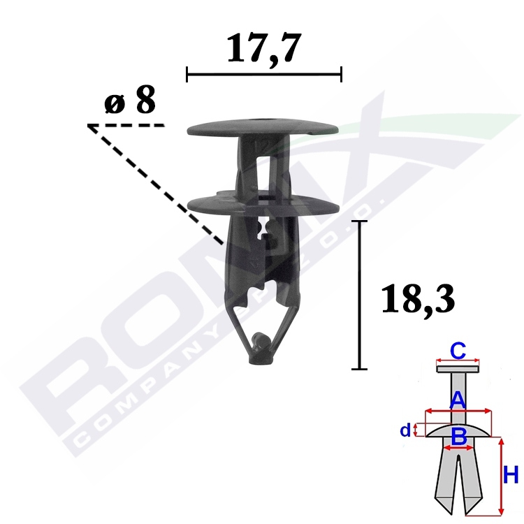 A 17,7 B 8,3 C 17,7 d 1,2 H 18,3 w otwór ø 8