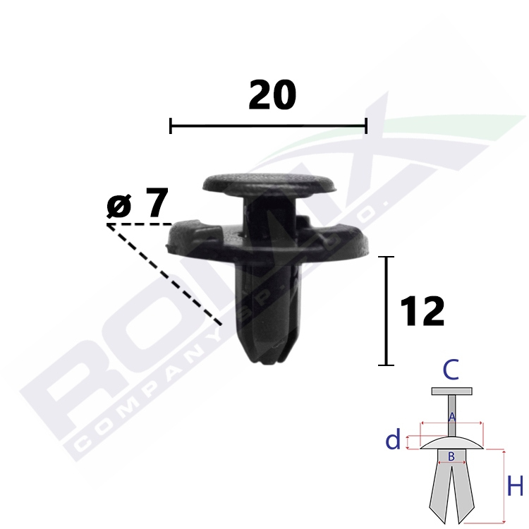A 20 B 6,7 C 13,2 d 3 H 12 w otwór ø 7