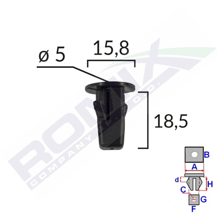 Dimensions: A 15,8 C 5 H 18,5 F 8,7 G 8,7
