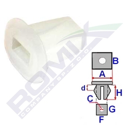 Dimensions: A 18,7 B 16 C 2 H 18,6 F 7,7 G 11