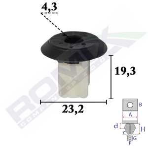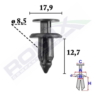 Dimensions: A 18 C 4,8 F 8,5 G 9,1 H 16,5