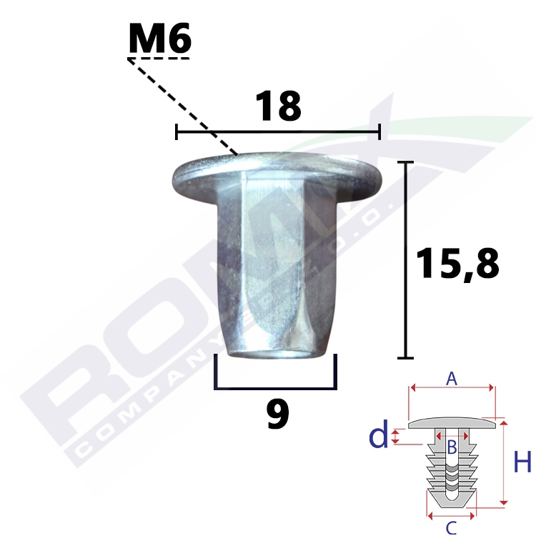 A 18 B 8,8 C 8,8 H 15,8 ø M6