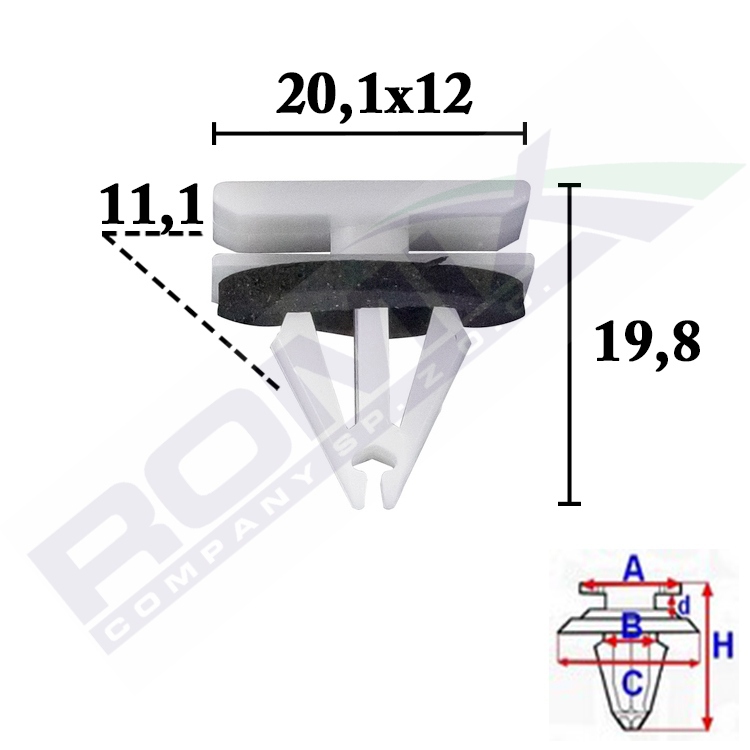 A 19,8x12,1 B 11,1 C 20,1x12 d 2,9 H 19,8