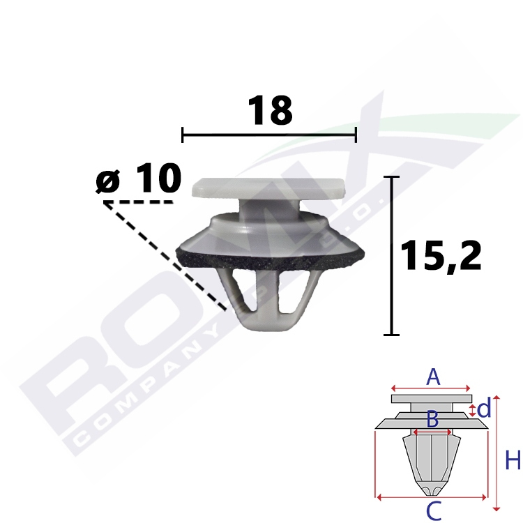 A 15x10 B 10 C 18 d 2,2 H 15,2 w otwór ø 10
