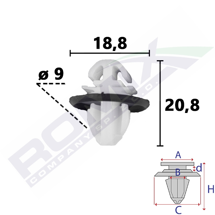 B 9 C 18,8 H 20,8 w otwór ø 9