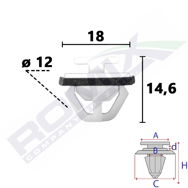 A 12x10 B 12 C 18x14 d 2,4 H 14,6 w otwór ø 12