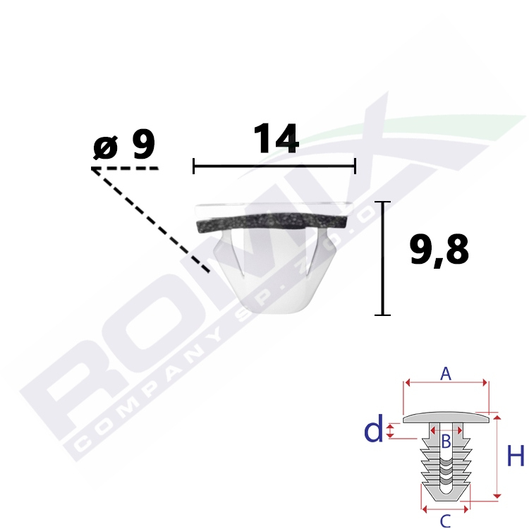 A 14x4,8 B 9,2 H 9,8 w otwór ø 9