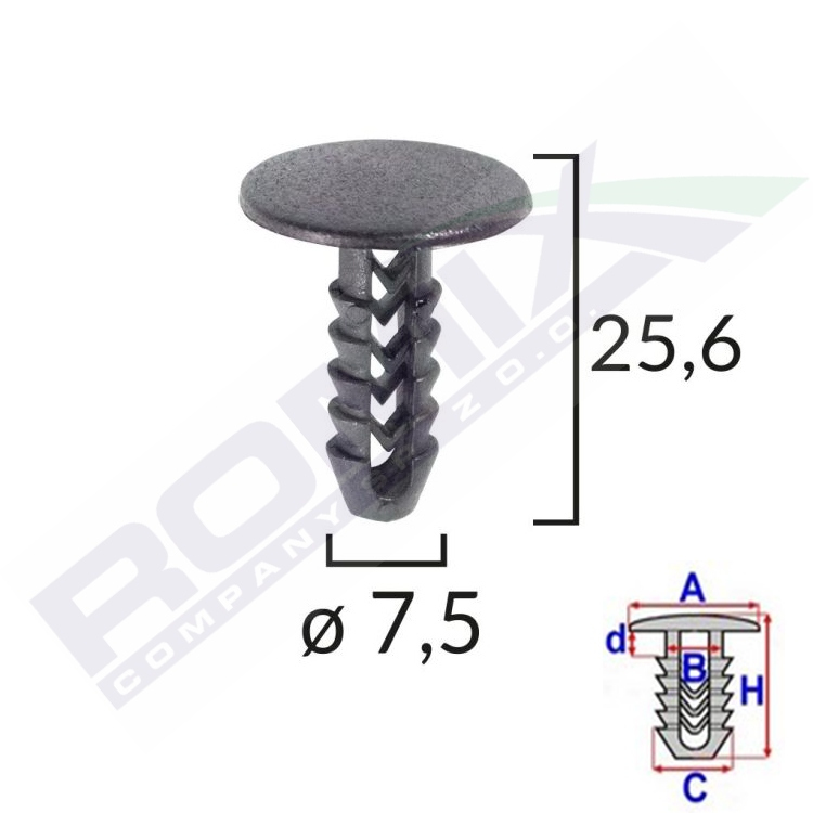 A 20,3 B 6,5 C 8,1 d 6,2 H 25,6 w otwór ø 7,5