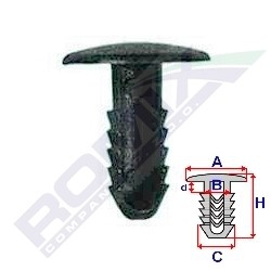 Dimensions: A 14 B 5,5 C 6,8 d 3,2 H 17,4 w otwór ø 6