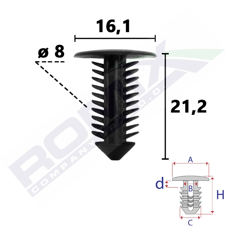 Dimensions: A 16,1 B 8,2 C 8,9 H 21,2 w otwór ø 8