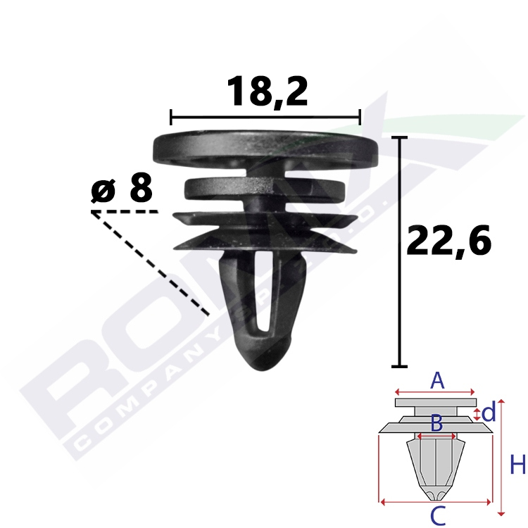 A 21,8 B 8,5 C 18,2 H 22,6 w otwór ø 8