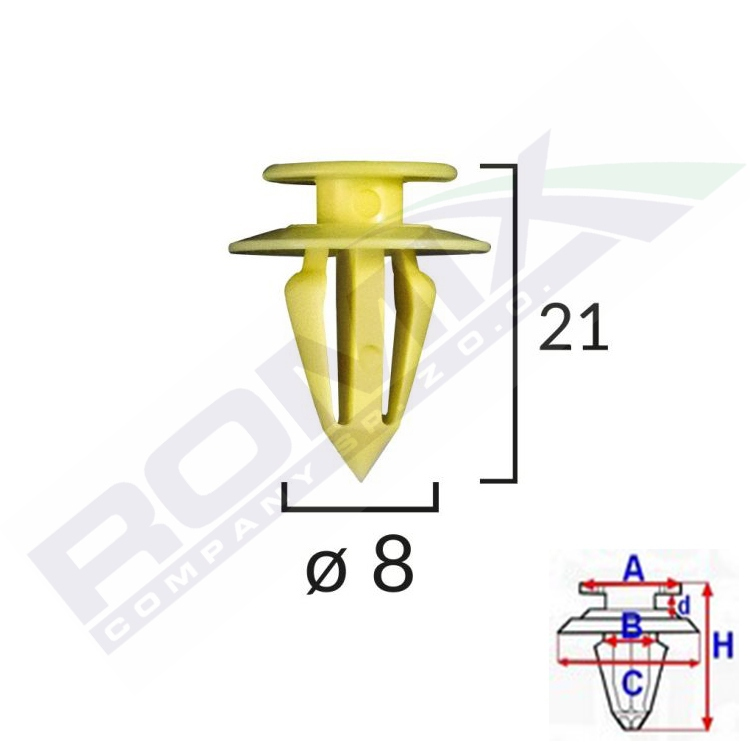 A 13,1 B 8,1 C 17,4 d 3 H 21 w otwór ø 8