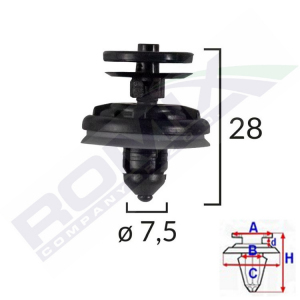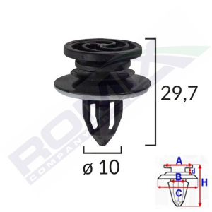 A 21,5 B 10 C 27 d 7,5 H 29,7 w otwór ø 10