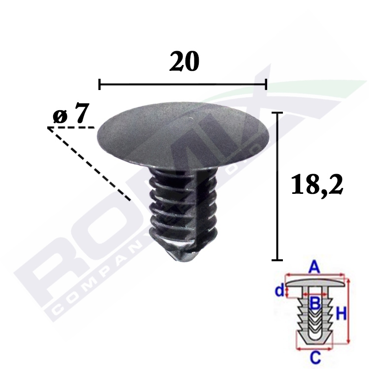 A 20 B 5,5 C 7,9 H 18,2 w otwór ø 7