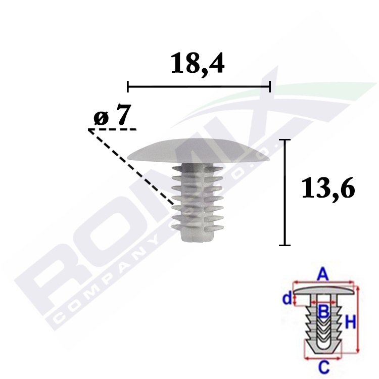 A 18,4 B 4,2 C 6,9 d 1.7 H 13,6 w otwór ø 7