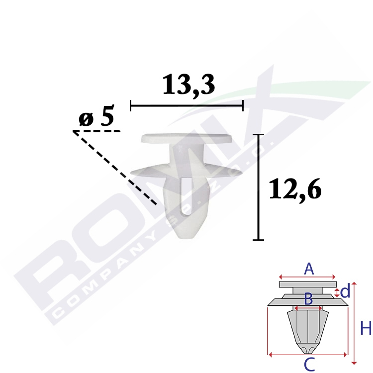 A 10,8x6,4 B 4,8 C 13,3 d 2,7 H 12,6 w otwór ø 5