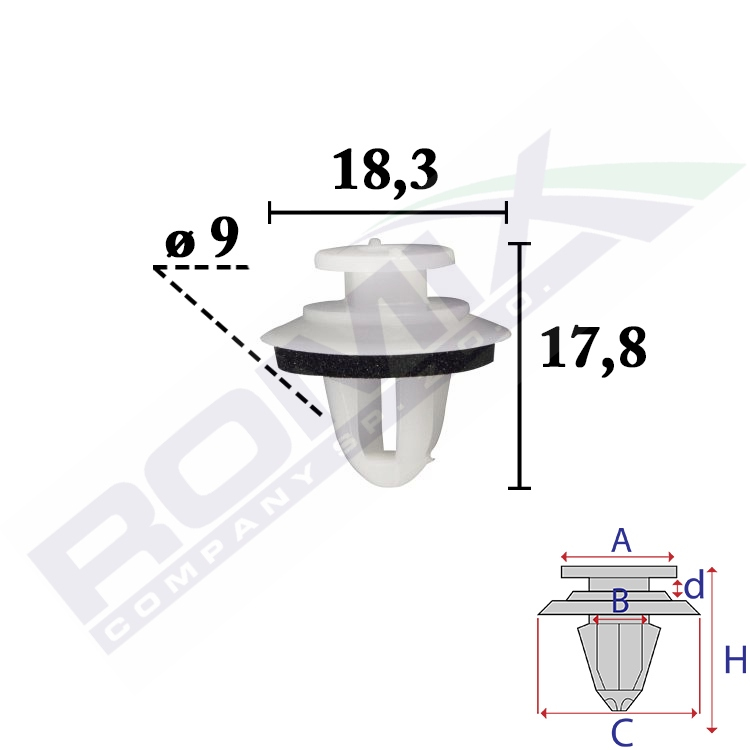 A 10,3 B 8,4 C 18,3 d 2,8 H 17,8 w otwór ø 9