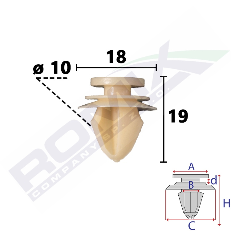 A 12,3 B 9,7 C 18 d 2,4 H 19 w otwór ø 10