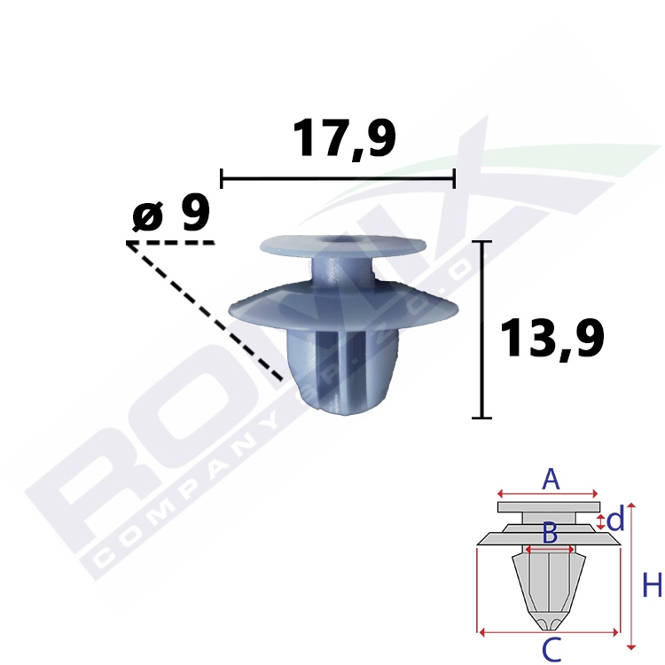 A 13 B 9 C 17,9 d 3,2 H 13,9 w otwór ø 9