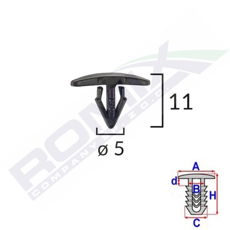 A 16x7 B 5 C 6,3 d 2,7 H 11 w otwór ø 5