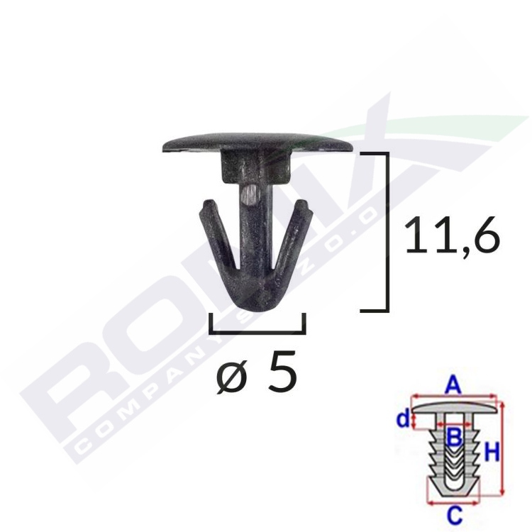A 12 B 4,4 C 6,7 d 3,4 H 11,6 w otwór ø 5