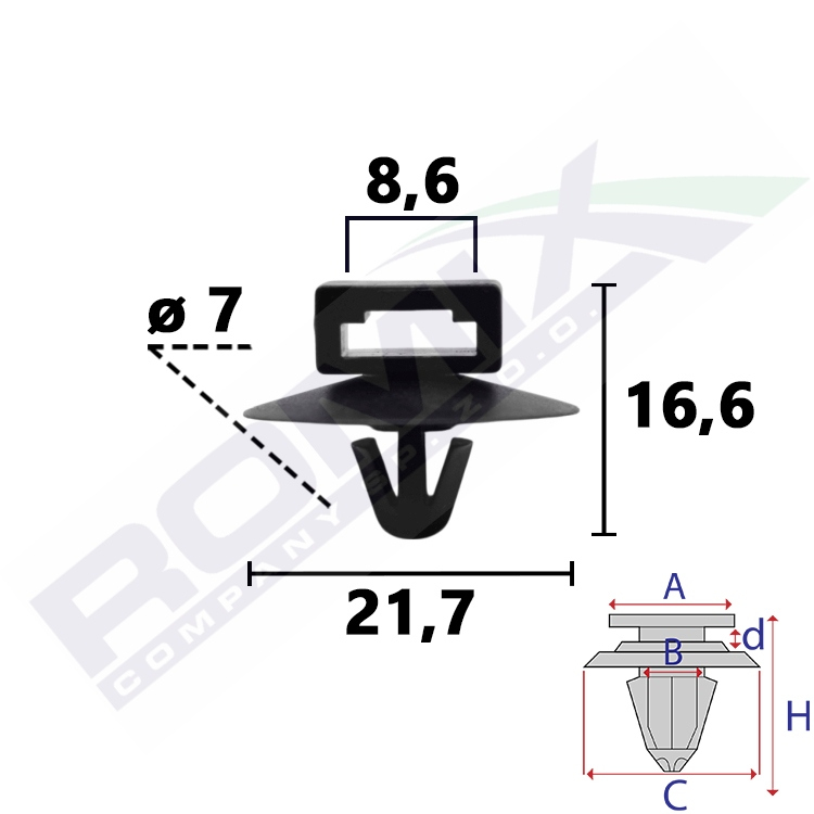 B 5,8 C 21,7 H 16,6 w otwór ø 6,5-7
