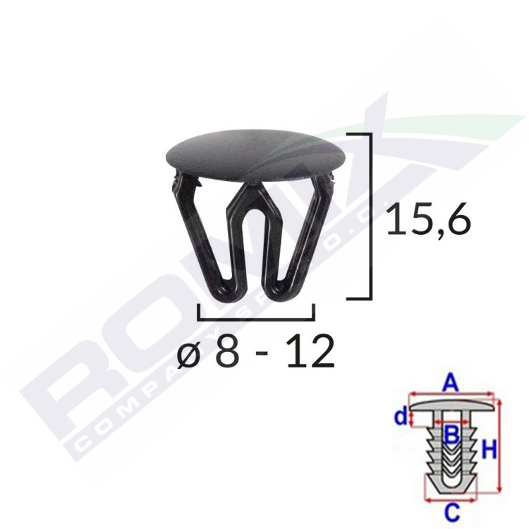 A 16,3 B 7,4 C 15 H 15,6, ø od 8 do 12