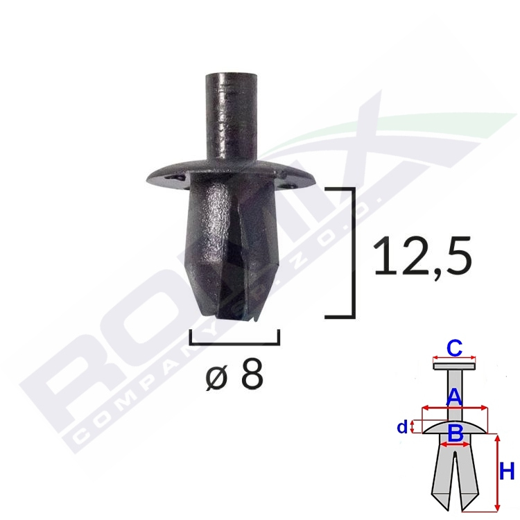 A 16 B 8 C 4,9 d 2 H 12,5 w otwór ø 8